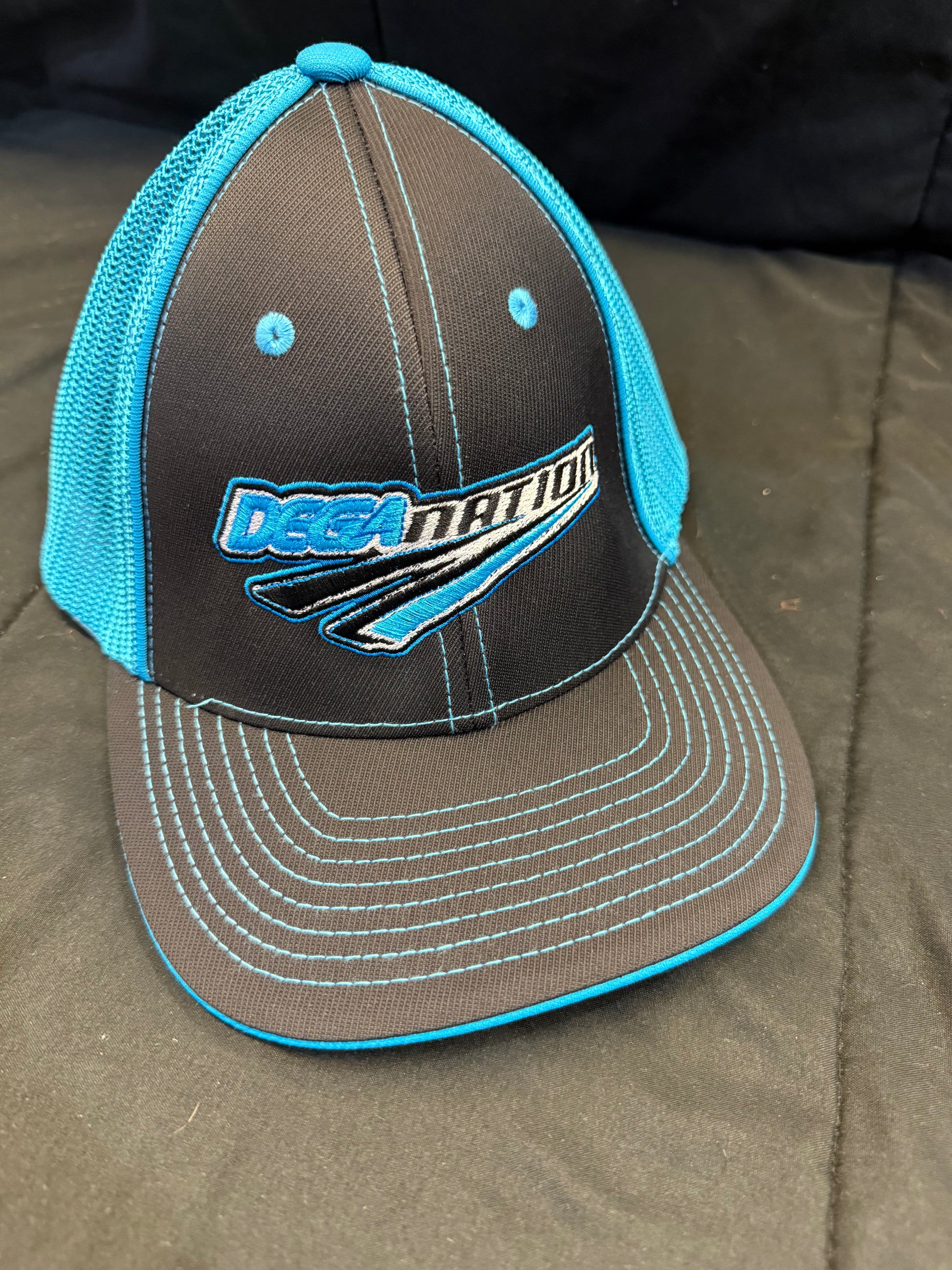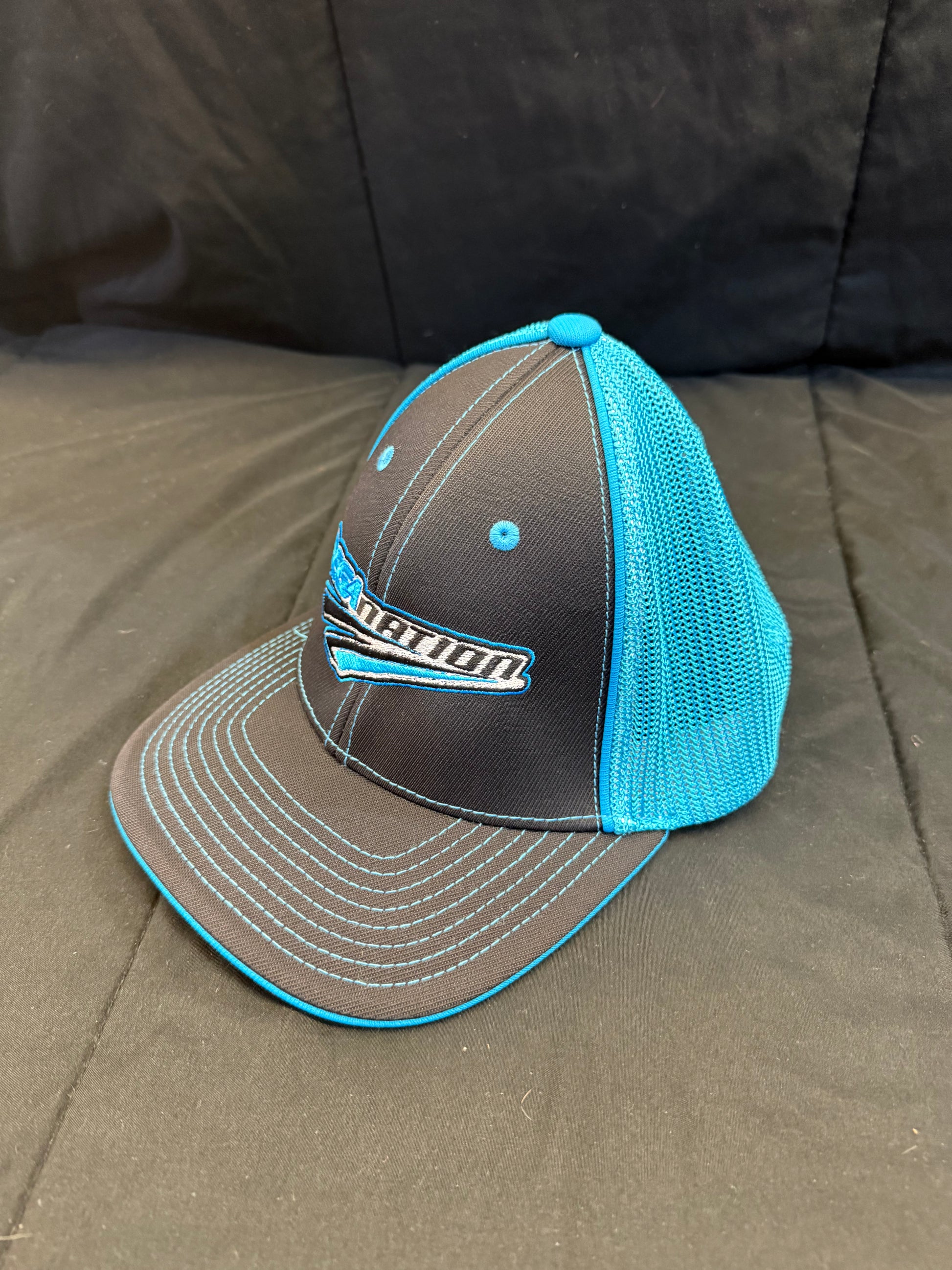 The 404 Trucker Hat in Blue Flame combines a modern charcoal graphite base with vivid neon blue accents for a distinctive look. Designed with a flexible fit, it ensures comfortable wear for various head sizes while providing breathability typical of trucker hats. This hat offers a stylish yet functional accessory, ideal for outdoor activities or casual urban wear, delivering both durability and contemporary appeal. Model DN019
