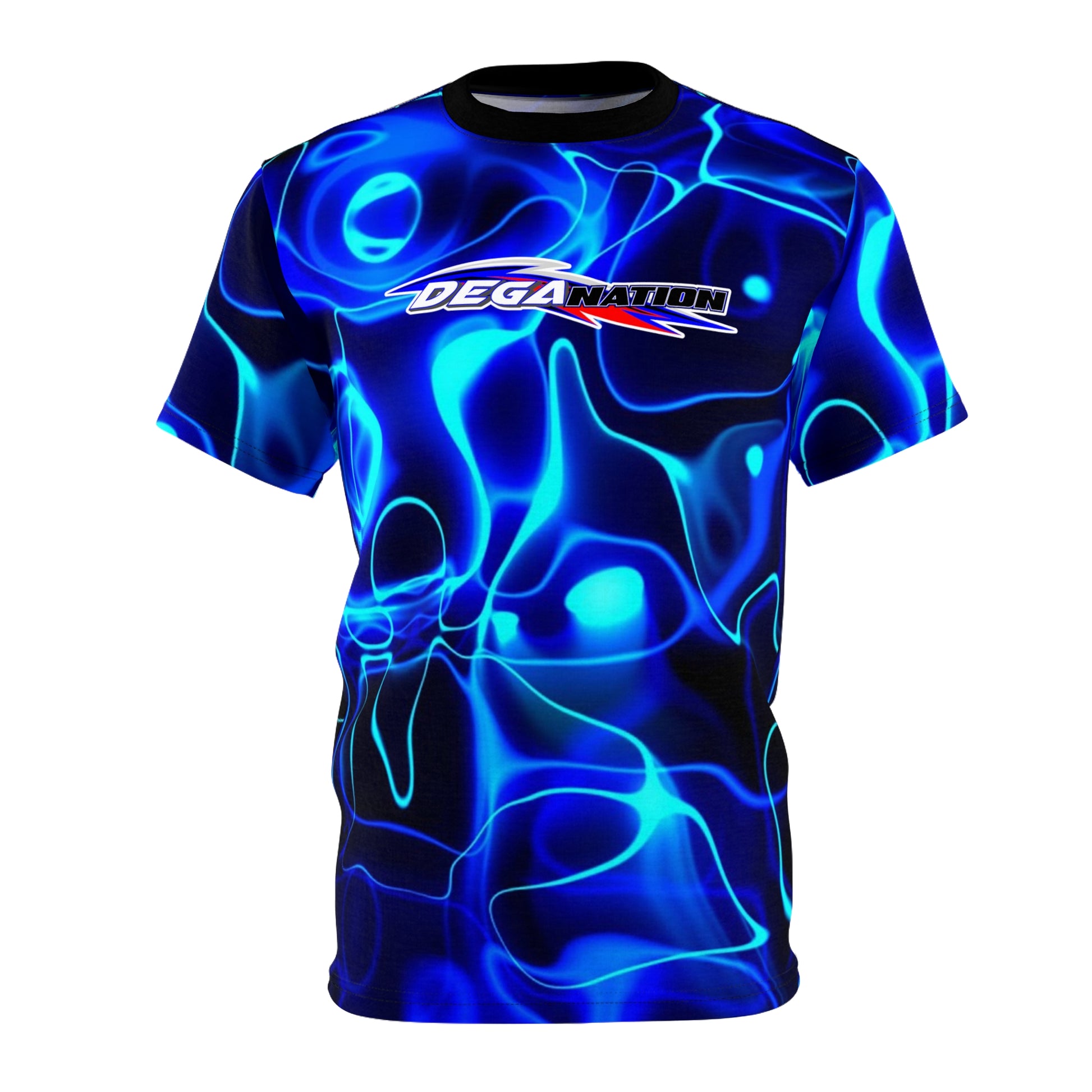 This all-over printed tee wraps you in an electric, liquid-blue swirl that feels equal parts retro arcade and late-night street racing. Lightweight polyester keeps the colors vivid and the cut keeps movement easy, so it becomes the go-to layer for meetups, track days, or hanging with friends. The subtle DEGA Nation badge across the chest reads like a nod to club culture—showing you belong without shouting. It sits cleanly under a jacket or stands out solo, bringing energy to casual days and event nights alike.