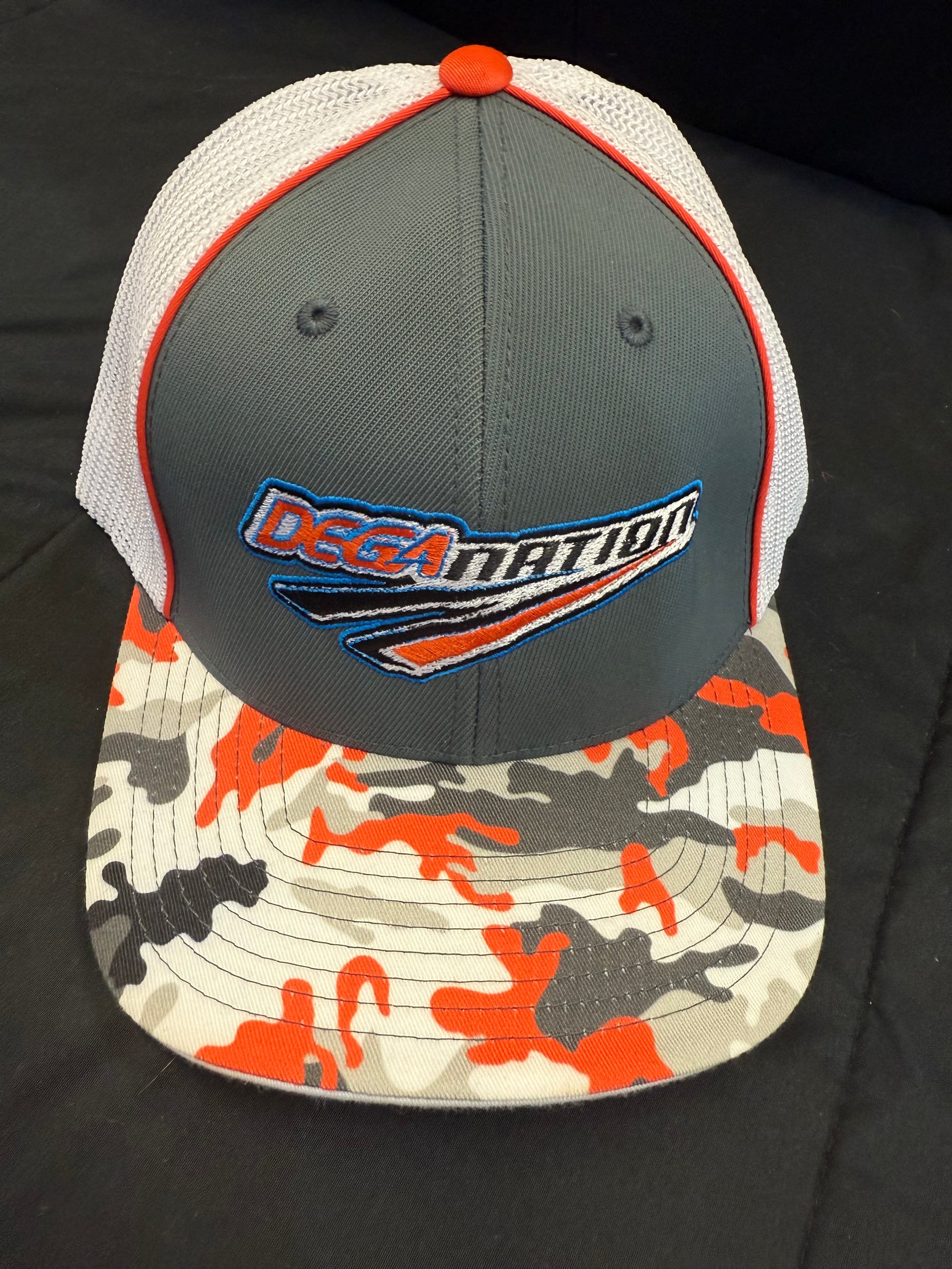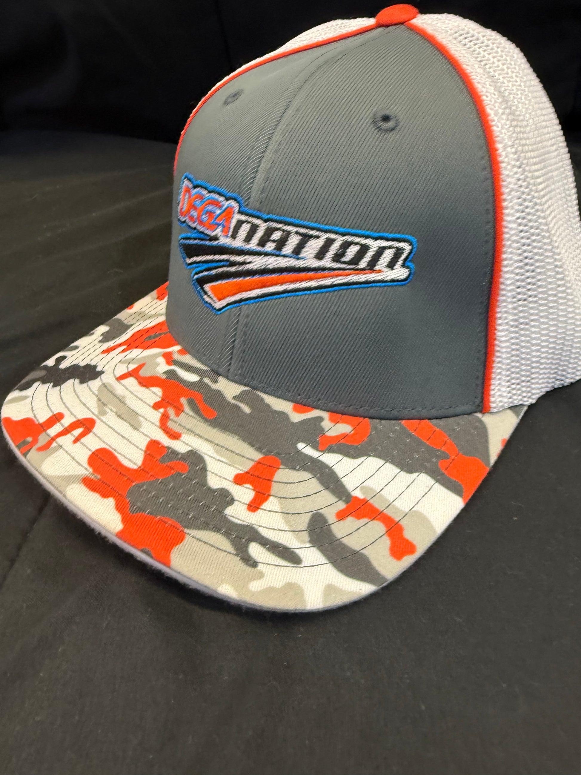 The Orange Hunter Flex Fit Hat combines durability and style with its graphite, white, and orange camouflage pattern. Designed for a comfortable fit, it features a flexible band that adapts to your head shape, ensuring all-day wearability. Ideal for outdoor enthusiasts, its camo design helps you blend seamlessly in natural environments while the bright orange accents enhance visibility when needed, balancing safety and stealth effectively. This hat offers a practical and polished look for hunting or casual wear. Model DN009