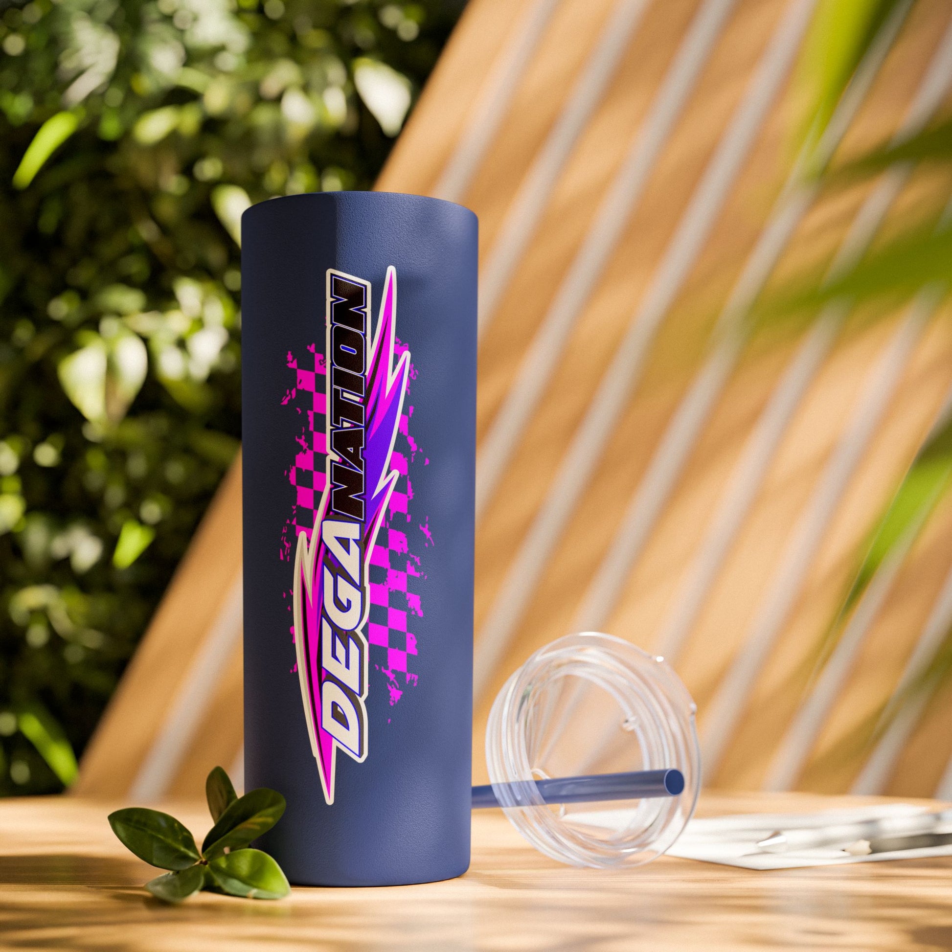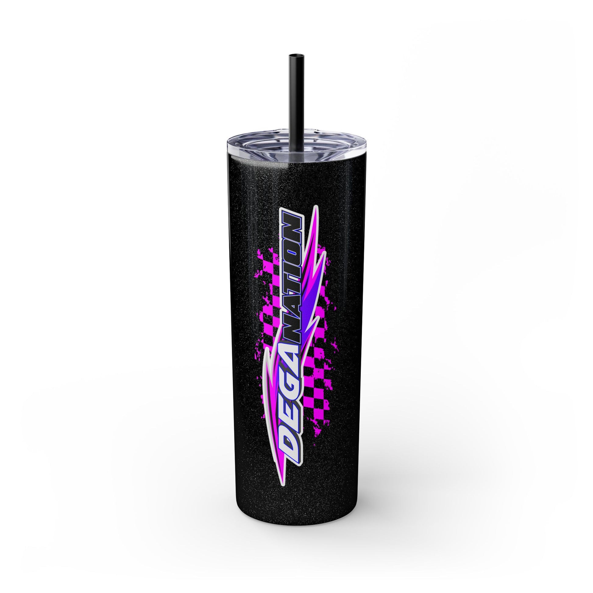 Skinny Tumbler — Pink Racing Stripe ‘DEGA’ 20oz Insulated Cup with Straw